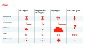 Het mooie is dat er ook algemeen geldende conclusies te trekken zijn. Conclusies die AM volgens Emma niet voor zichzelf houdt: “We hebben interessante inzichten opgedaan door ons onderzoek. Zo zagen we bijvoorbeeld dat glas in woningen een grote impact heeft op de MPG (MilieuPrestatie Gebouwen) en maar weinig impact op de kosten. Daarbij zie je dat hergebruikt HR++ glas qua circulariteit veel interessanter is dan HR++ glas en qua kosten ongeveer gelijk aan HR++. Een makkelijke innovatie zou je denken. Tripleglas scoort helaas op MPG vlak slechter, maar dan wel weer beter  op isolatiewaarde. Het ligt dan vervolgens aan je ambitie welke keuze je maakt.