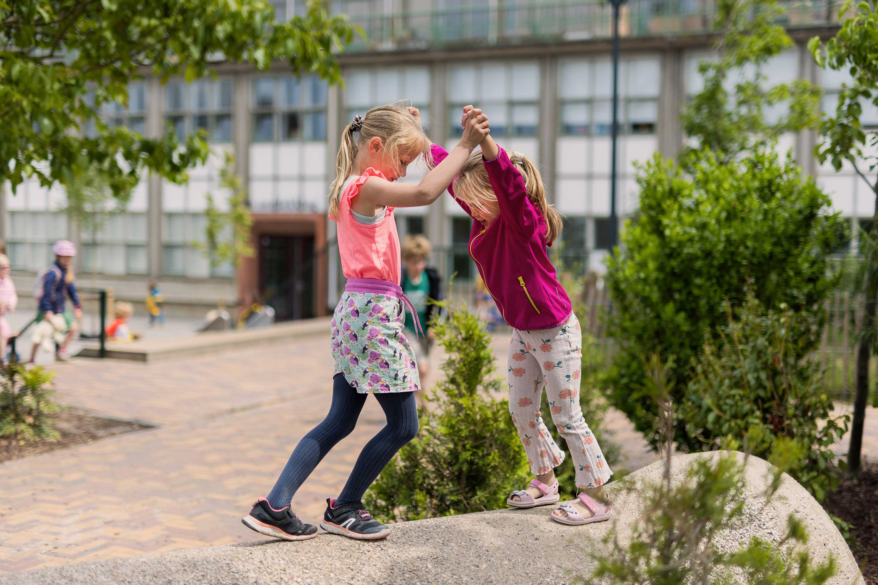 Dochters Noa en Zoë zitten nog steeds op dezelfde school. “De school is super leuk en we hebben veel contacten hier. Zo zijn we nog niet helemaal weg uit de buurt.”